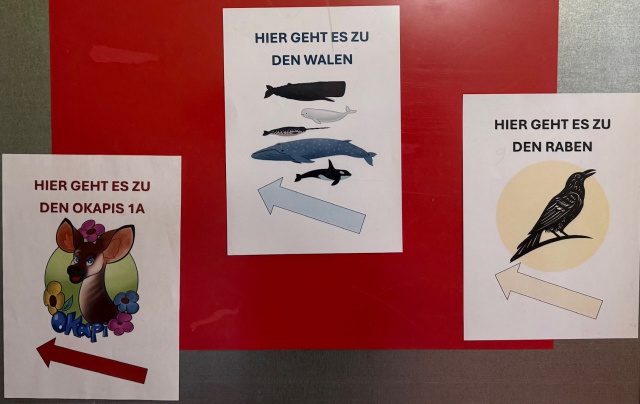 Da seid ihr ja endlich, liebe Wale, liebe Okapis und liebe Raben: Wir haben schon auf euch gewartet, euch beschnuppert und beäugt, wie ihr da in der ersten Woche so über unseren Schulhof gelaufen, geschwommen und geflogen seid.